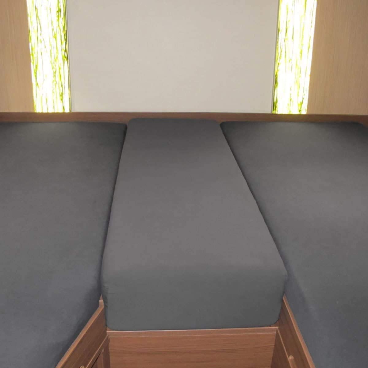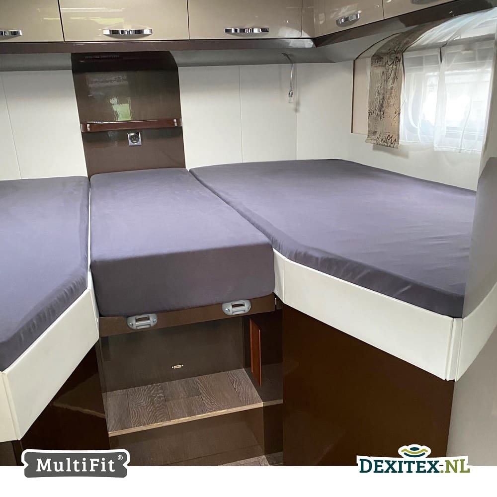 Este juego de sábanas bajeras de franela está especialmente diseñado para la disposición de colchones de 3 piezas en autocaravana o caravana. El juego contiene 3 sábanas bajeras de franela. Una para el colchón izquierdo, otra para el colchón derecho y una especialmente confeccionada para la pieza central. Así, los 3 colchones quedan perfecta y ordenadamente confeccionados.